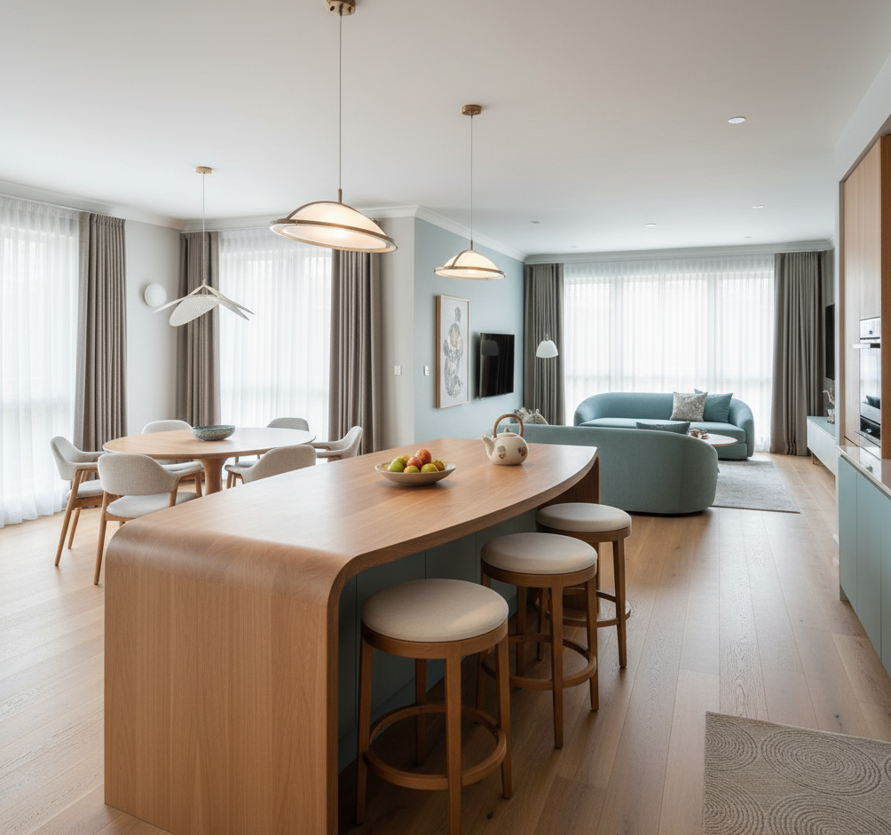 Next, look at texture and colour. Mix smooth tops like marble or quartz with warm touches like wood or rattan. This gives contrast and charm, just as colour choices in property styling quietly affect mood and balance in a home. Pick colours that match your cabinets or floor. It helps your kitchen feel joined together, especially in open spaces.
