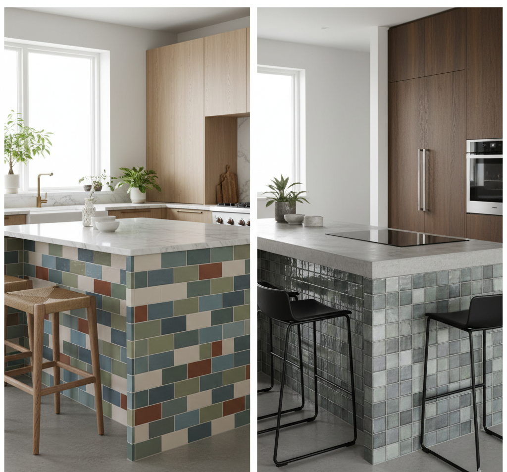 Tiles bring colour and pattern to your island. You can use small or large tiles depending on the style. Glossy tiles shine and reflect light, while matte tiles feel soft and calm. Choose bright colours for fun or soft ones for a clean look. Tiles are easy to clean and last long. They also protect from stains and scratches. A tiled island can become the main feature of your kitchen.